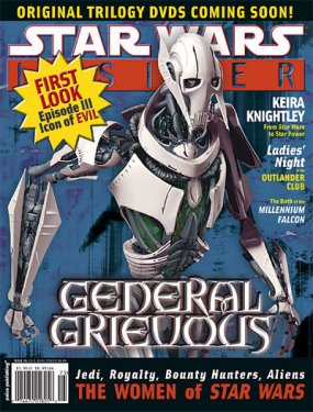 Le magazine américain Star Wars Insider présente en couverture Le Général Grievous, le chef militaire de l'armée des Séparatistes, un être à moitié robot, à moitié extra-terrestre, qui sera le vilain principal dans Star Wars : Episode III. Grievous est un maître stratégiste et le meilleur tueur Jedi de la Galaxie. Rappelons que le film sortira sur les écrans nord-américains le 25 mai 2005.