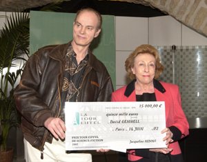 Jacqueline Nebout donnant le prix à David Gemmel en 2002 |